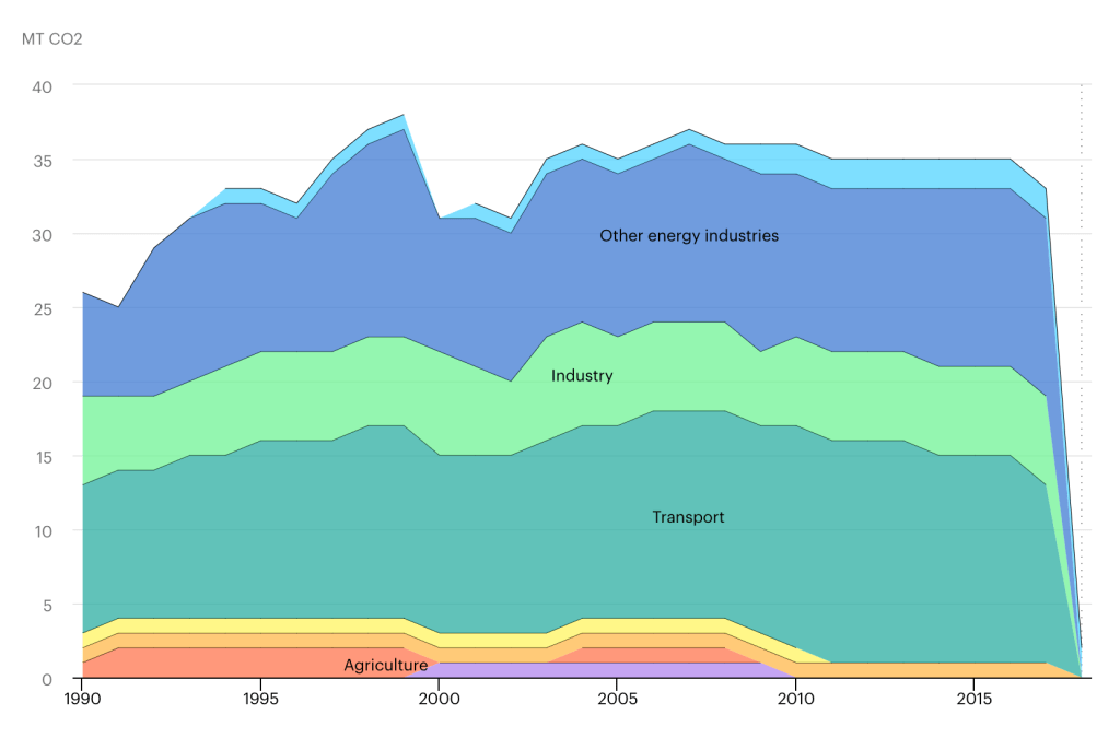 Figure 1. Total CO2 emissions by sectors from Norway as shown from the IEA.